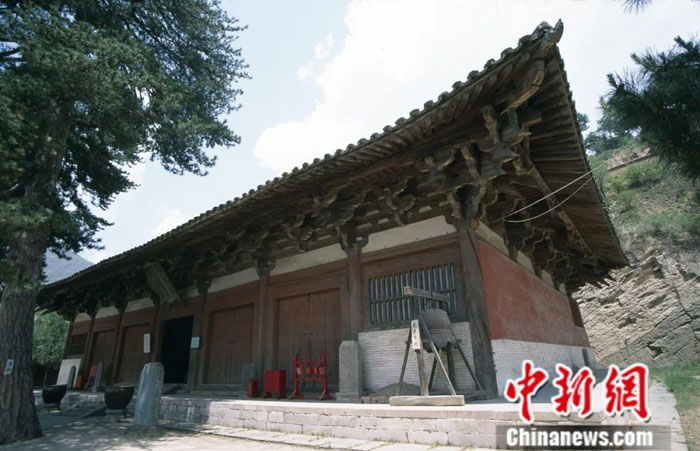 佛光寺东大殿,建于唐大中十一年(公元857年),是一座保存完好的唐代木构建筑。“除殿本身为唐代木构外,殿内尚有唐塑佛菩萨像数十尊,梁下有唐代题名墨迹,拱眼壁有唐代壁画。此四者(得)一已(可)称绝,而四艺集于一殿,诚我国第一宝也。”梁思成后在《中国建筑史》中写道。
