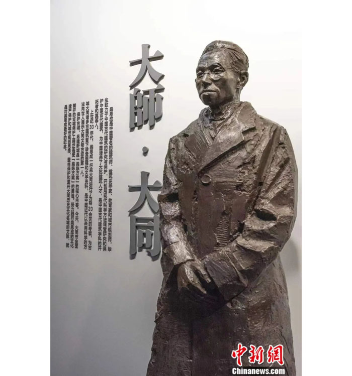 走近这座精致的院落,首先映入眼帘的是“梁思成纪念馆”六个大字,由梁思成弟子、中国古建筑学家罗哲文所书。踏入纪念馆大门,梁思成与妻子林徽因的铜塑雕像正位于四合院中央。在雕像正后方,展馆背景墙上的“大师·大同”,为观众开启了认知梁思成生平事迹的大门。