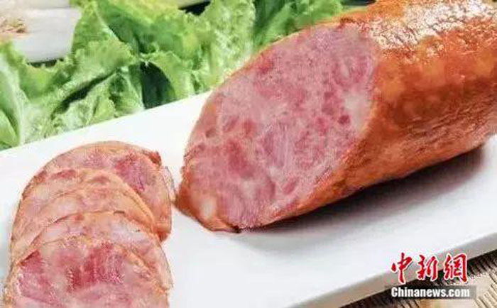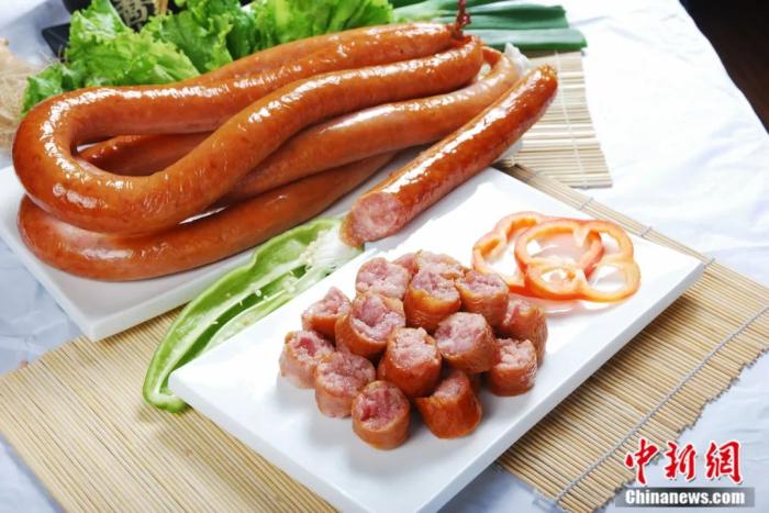 定州手掰肠的肠体绯红油亮,还带着诱人的香味。用手轻轻一掰,肠身应声而断,肠衣裂开时带着脆脆的轻响,咬在嘴里,脆而不硬,微带弹性。肠肉色泽透红养眼,肉质肥美软嫩。