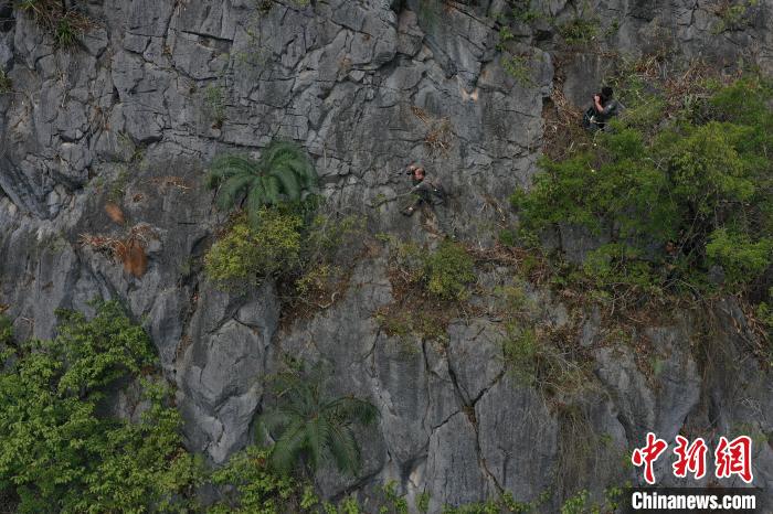 2023年3月发现的72.4米广西最高树,再次让弄岗备受瞩目。“从准备对望天树的科考,到最终确定其高度,其实用了三年多时间。”刘晟源说,“这棵望天树生长在人迹罕至的峰丛洼地底部原始森林当中,所需的各种测量设备、安全保障设施、救援设备、生活物资,都只能靠人背进去。在从营地进入洼地底部的过程中,还要翻越两面落差超过20米的垂直崖壁,危险重重。”