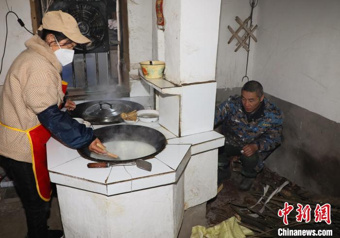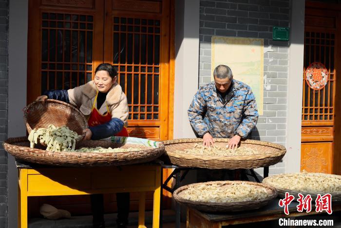 在安徽省肥西县紫蓬山旅游开发区山口村一个家庭作坊里,年过半百的手艺人许常柱和老伴正在制作当地过年必备美食──粉折。