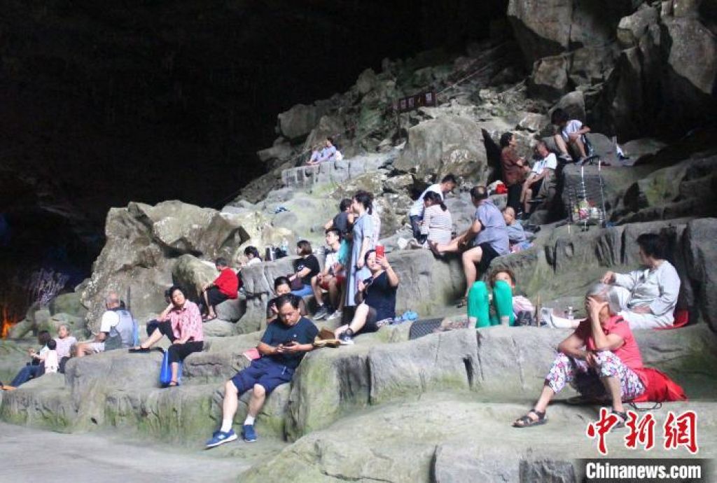 位于巴马县城附近的百魔洞,是“候鸟人”及游客们的聚集地。洞窟内,每天都会有一两百位“候鸟人”到百魔洞磁疗、休养。“候鸟人”张桂萍就是这里的“常客”。此前,她患有严重的高血压,来巴马疗养后,她的病症得以慢慢缓解。