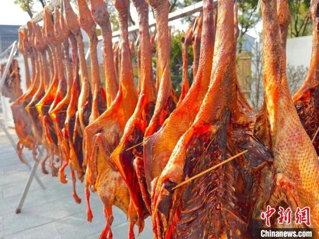 “老鸭品质好,是酱鸭口感好的重要前提。”蒋秀飞说,温度低但阳光好,这样晒出来的老鸭,从皮到肉再到骨头,都是香的。