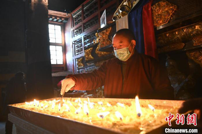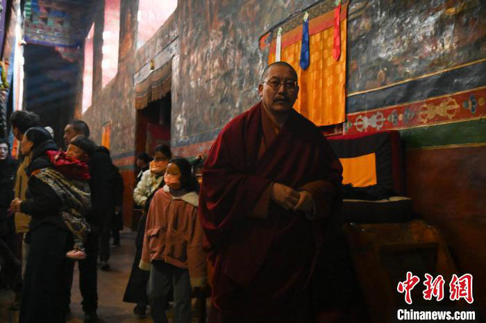 早上9时30分许,来萨迦寺朝拜的信众络绎不绝。此时,僧人洛卓土美已经结束早课,吃过早饭,开始例行巡查每间佛殿。酥油灯、消防设备、灯香师值班等等均是他巡查文物安全的范围。