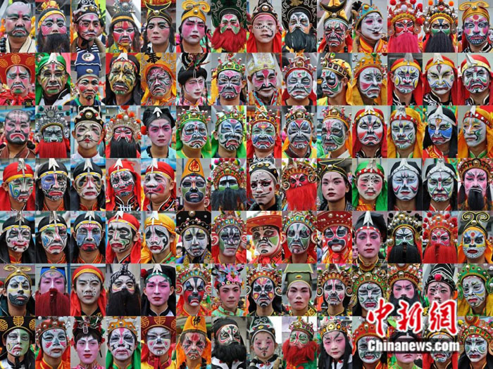 在潮汕,几乎每支英歌队都有风格独特的脸谱,大多按梁山泊英雄形象造型,着武士服,紧身短打,手执特制双短棒叩击起舞,并配以锣鼓、螺号节奏。