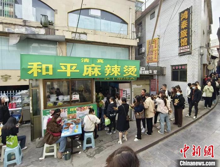“我也是刷短视频知道我们甘肃的麻辣烫火了,现在每天都有人来店里打卡,光是外地游客就能有四、五百人。”工作日的中午12点多,甘肃省天水市的和平麻辣烫门口已排了长长的队。