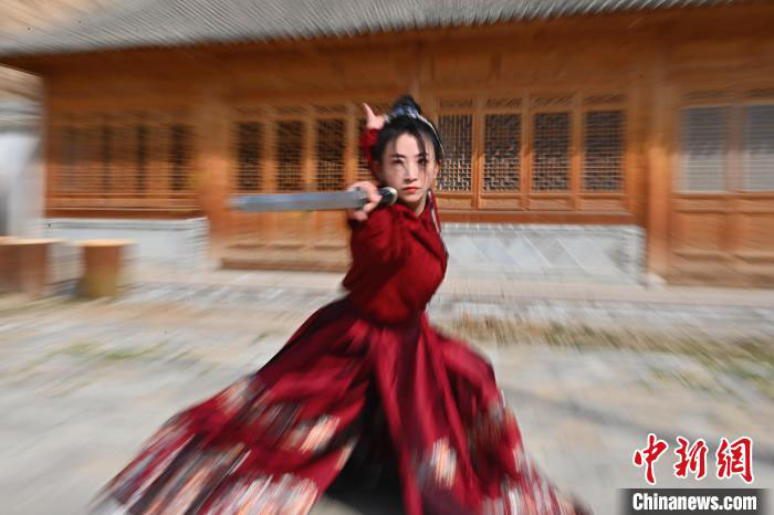 踢腿、空翻、武刀、弄剑、耍枪……3月上旬,在甘肃天水市秦州区伏羲庙后一处山中小屋,“女侠”张含亮身着传统马面裙,展示各式各样的兵器,舞枪弄棒间,响起清脆有力的簌簌风声。