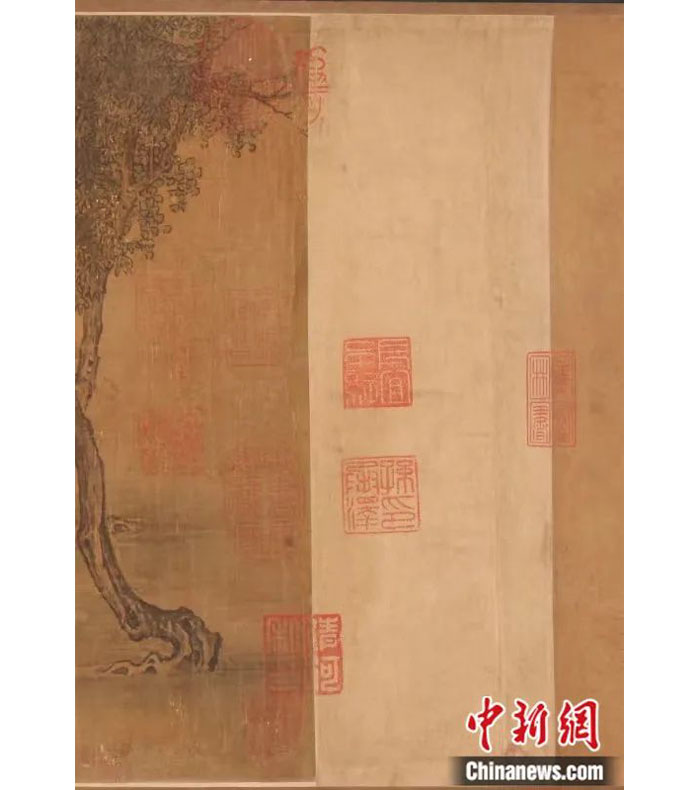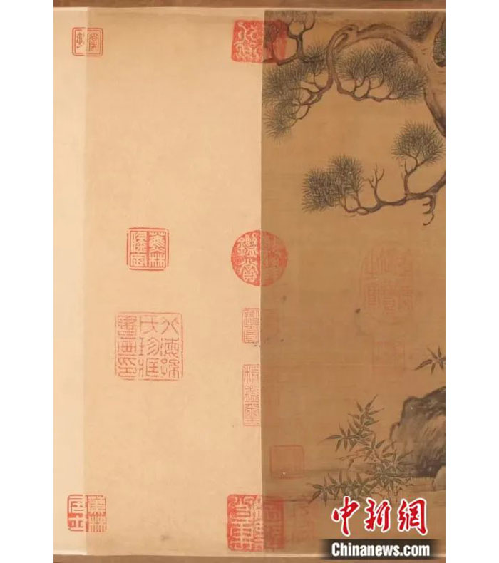 画首钤有“乾隆御览之宝”“石渠宝笈”“三希堂精鉴玺”“宜子孙”“御书房鉴藏宝”,画尾钤有“嘉庆御览之宝”“宣统御览之宝”“蕉林梁氏书画之印”。1983年7月,经故宫博物院著名书画鉴定专家徐邦达、刘九庵、王以坤等鉴定,称“此卷为文物一级甲品之最,视国宝而无愧,垂青史而不逊矣”。