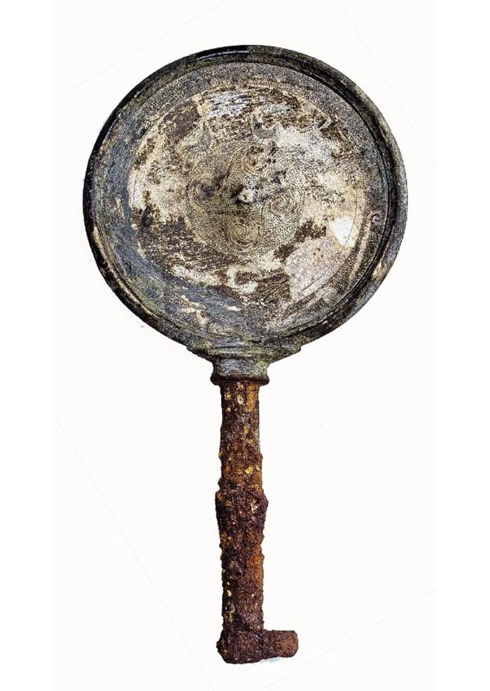 这种技艺在青藏高原有着悠久的历史。据考古发现,从新石器时代以后至吐蕃王朝兴起之前,青藏高原经历了一个漫长的早期金属时代,金属器具及造型物的出现是其重要标志。例如,1971年在贡觉县城北石墓出土的青铜三棱镞叶型铁簇、铜刀等;1986年在昌都贡觉香贝石棺墓葬中出土的二件铜刀,一件柄部及尾部为红铜,端部为青铜,从中间焊接而成;1990年曲贡墓室出土的带柄铜镜;1991年阿里日土发现的石丘墓则出土有铁刀等,均为当时金属器物的典型。这些充分证明了金属锻造工艺早期就在青藏高原达到了较高水平。