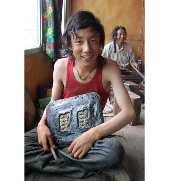 在当代,以金、银、铜、铁等金属为主,辅以木料、动物皮毛等原料,进行生产、加工、制作成各种器具的金属锻造技艺在西藏自治区及各涉藏州县都有传承。过去,该技艺是在寺院或家族内部教授,祖辈都认为是独家技艺不可外传,致使金属锻造技艺一度面临手工艺人流失的危机。