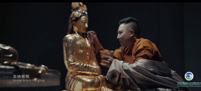 四川甘孜德格县的布泽仁是藏族金属锻造技艺钦乐利玛铜(青铜)铸工艺州级代表性传承人。出生于1992年的他,秉承“守得住传统,玩得起时尚”的理念,将利玛铜铸工艺的作品线从传统造像延伸到以各地民俗传统和民间故事为文化基础的系列文创作品,实现了把古老的青铜产品转化为时尚产品。