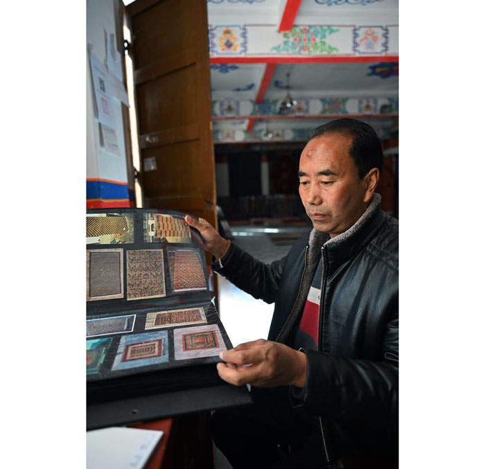 今年55岁的普布顿珠出生在江孜县一户普通家庭,12岁时,家里的经济条件无法供他继续求学。于是,他进入江孜地毯厂拜师学艺。学习编织技艺三年、学习绘图一年、学习平剪一年……五年后,他从江孜地毯厂学成出师,来到拉萨以编织藏毯谋生。1993年,他着手负责喀瓦坚藏毯厂的建厂筹备工作。可以说,普布顿珠是喀瓦坚藏毯厂的“元老级”师傅。