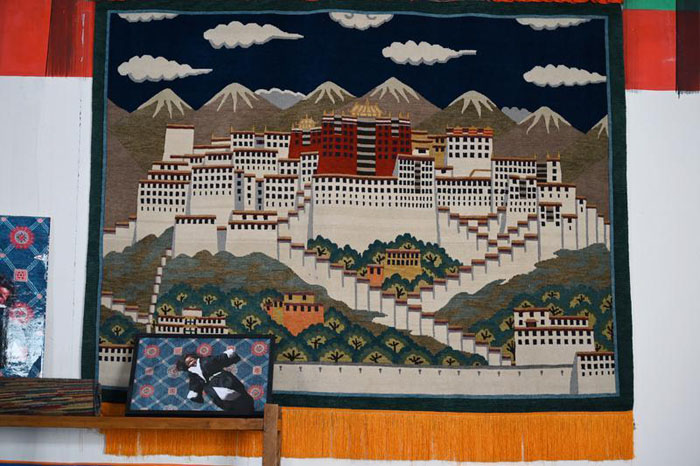 在藏毯厂陈列厅里,悬挂着一幅以布达拉宫为题材的藏毯。“眼前的这幅藏毯已经悬挂十年,没有任何变形。”喀瓦坚藏毯厂工作人员彭志红说,可见手工藏毯的质量绝佳。