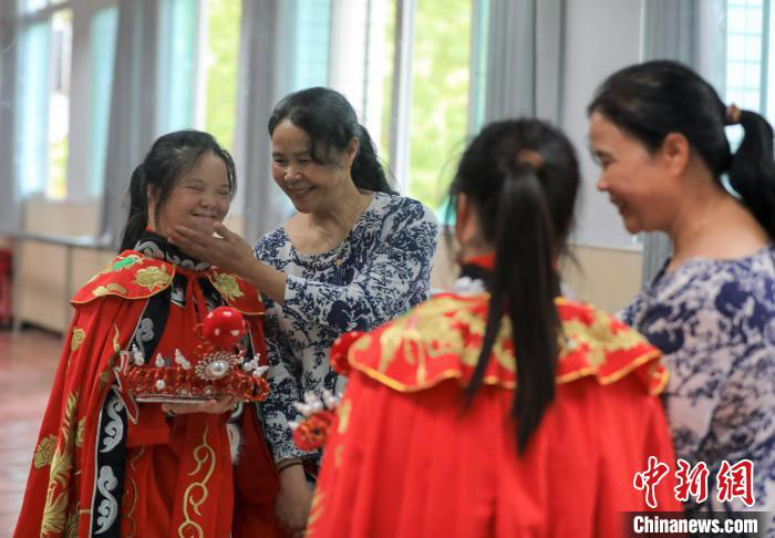 随着鼓点紧凑响起,南充市特殊教育学校训练室中,身着华丽戏服的学生殷秋华正在练习川剧变脸。患有唐氏综合征的她,身体随音乐翩翩起舞。突然,伴随鼓点,殷秋华脸上一张又一张精美面具迅速变换。围观师生凝神屏息,享受着眼前这场视觉盛宴。