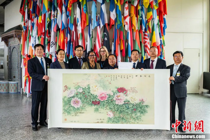 “近年来,巨野工笔牡丹画不仅在国内占据80%的市场,还不断在国际文化交流中频频亮相。”据巨野县书画院院长程军伟介绍,2023年,巨野工笔牡丹画走进奥地利维也纳联合国城、德国慕尼黑孔子学院。7幅巨野工笔牡丹画作品被联合国维也纳办事处及联合国工业发展组织等国际组织收藏。巨野工笔牡丹画还闪耀共建“一带一路”国家,走进乌兹别克斯坦撒马尔罕。