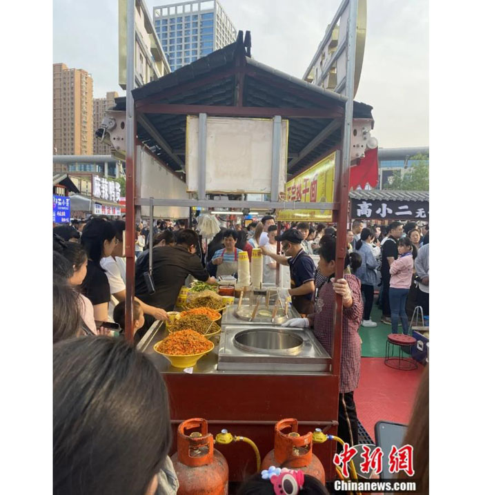 目前这里约有600多个摊位,游客不仅可以品尝到烧麦、饸饹等正定特色传统美食,还有沈阳鸡架、长沙臭豆腐、东北锅包肉、武汉热干面等全国各地的招牌美食。