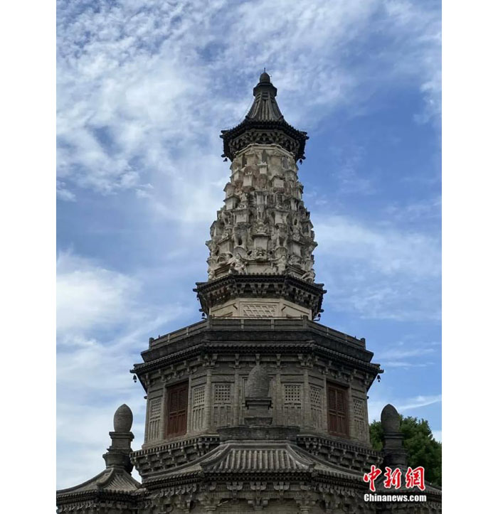 临济寺澄灵塔秀丽典雅;临济寺澄灵塔为九层密檐式,通高30.47米,因其全部由砖石砌成,通体呈青色,俗称“青塔”。