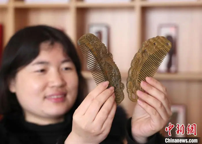 在非遗匠人的一雕一琢中,一块块木头“化腐朽为神奇”,变成一把把精巧灵动的高榆木梳,成为一张张靓丽的文化名片。