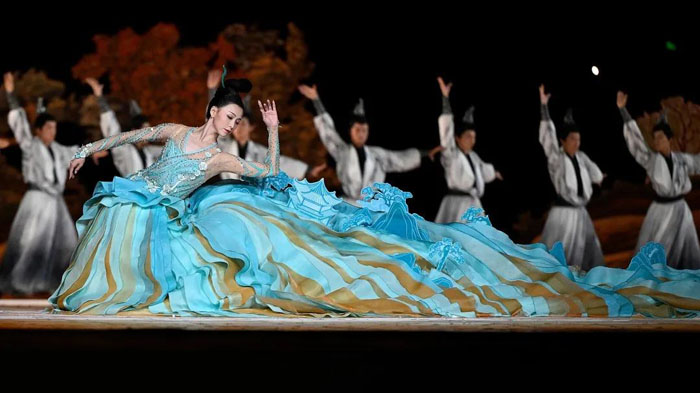 杭州亚运会开幕式上,舞蹈演员身着“水天碧”长裙,伴随优雅的旋律在千里江山的水墨画卷中翩翩起舞,给中外观众留下深刻印象。