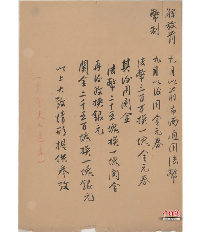 戏剧博物馆还收藏着一份新中国成立前钱币兑换的手稿,这也是出自老舍之手。《龙须沟》第一幕发生在1948年初夏,当时通货膨胀严重,法币贬值,人们拿到薪水后要立刻换成银元。这份手稿记录了当时的钱币兑换情况,与剧中1949年前后社会大转折的历史情节相呼应。这两件手稿记录了老舍对剧目二度创作的关注,更体现了他尊重史实的严谨态度。