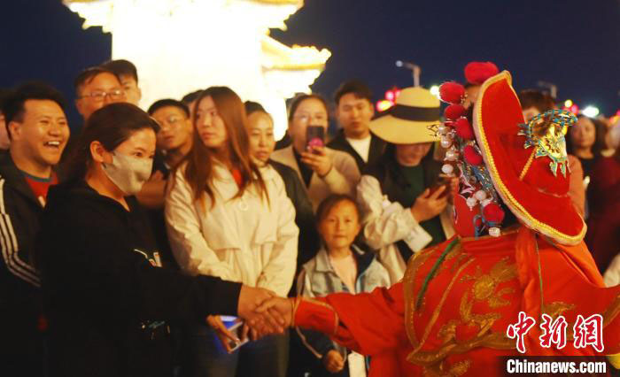 “我们表演的中国传统戏曲,跟昆仑天街的建筑风格很契合。”邢灵存来自河南洛阳,“我们经常表演豫剧、曲剧、黄梅戏等曲艺,吹个唢呐、打个梆子,表演不同地域流行的戏曲,那么来自这些地方的游客,就有了到家的感觉。”