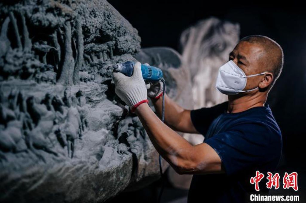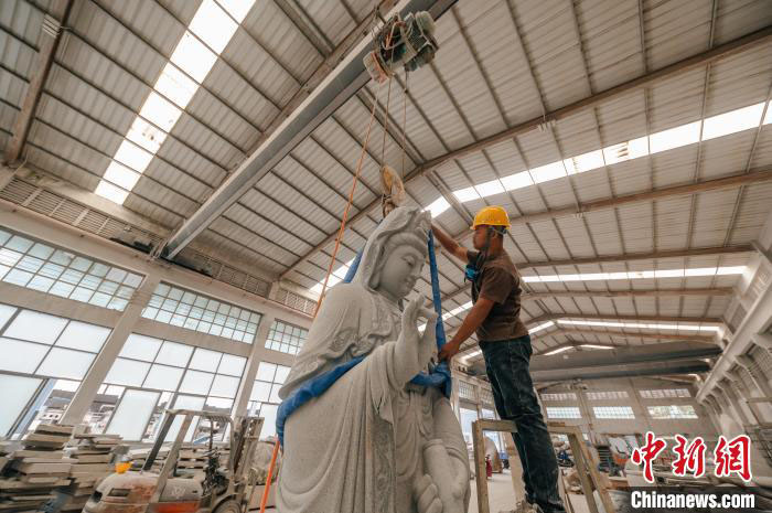 在惠安县豪翔石业的石雕工坊中,锤击石块的声音不绝于耳,石屑飞舞间工匠们手中的作品逐渐成形。
