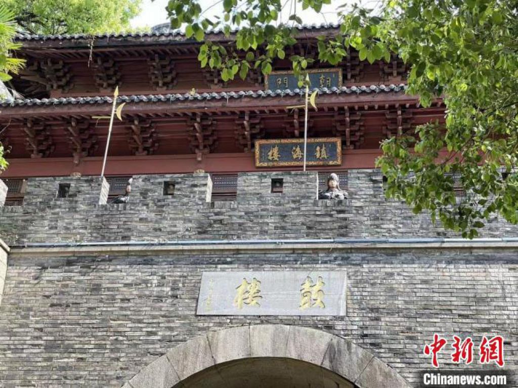 站在朝天门脚下,抬头可见三块匾额,从上至下依次为朝天门、镇海楼、鼓楼。浙江大学历史学院副教授、中国古代史研究所副所长陈志坚受访时说,这见证了朝天门的演变过程。