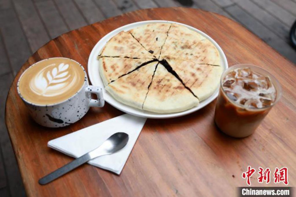 如今,永嘉麦饼这口地道的“中国味”还配上了“洋气”的咖啡,掀起打卡热。走进楠溪江畔的花开麦饼屋,古色古香的韵味扑面而来,不少年轻人靠在折椅上,先拍照,后一口麦饼一口咖啡,好不惬意。