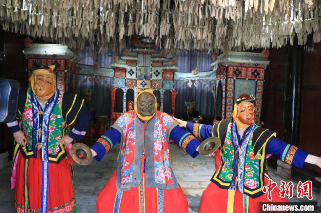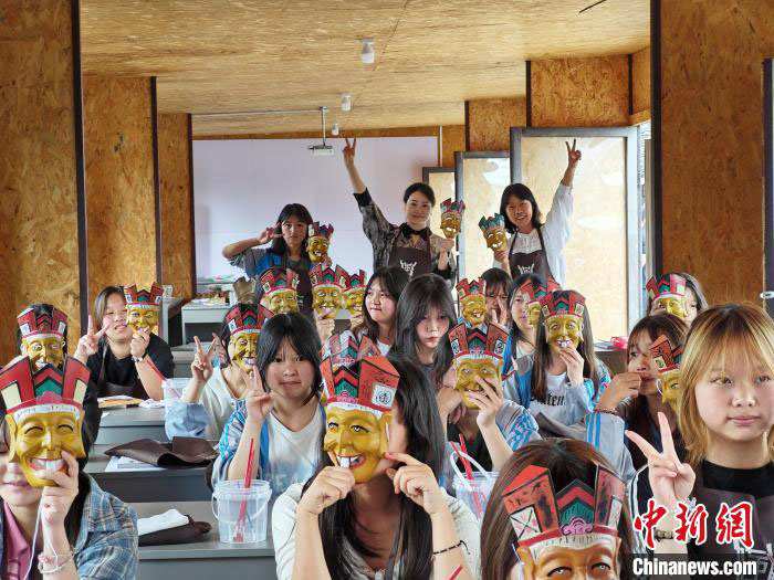 日前,40多名香港青少年到访贵州德江傩堂戏博物馆。锣鼓声下,头戴傩面具、身披红底碎花彩衣的傩戏师登台表演,他们时而呢喃哼唱、时而歌舞跳跃,似从远古穿越而来,让观者为之震撼。