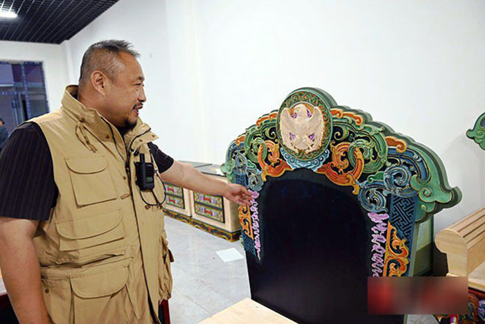 在呼伦贝尔市海拉尔区东山红星不夜城,记者遇到了蒙古刀非遗传承人闻都苏。走进闻都苏的工作室,蒙古刀、金银饰品、铜雕塑等精美的民族手工艺品让人应接不暇。除此之外,蒙古族家具制作在闻都苏带领的团队下,每一件家具都典雅、高贵、时尚,同样深受游客的喜爱。