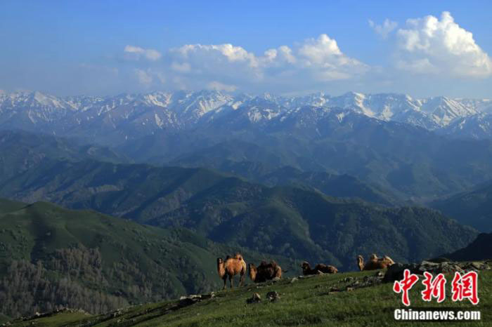 每年夏季,覆盖着皑皑白雪的巴尔鲁克山,蓝天白云与碧绿的草场交相辉映,每一幅图景都可以做手机屏保,令人流连忘返。