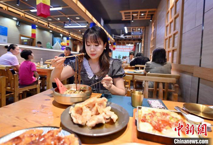 延吉冷面配锅包肉,中国东北饮食界两大“顶流”相遇。一冷一热,看似难以调和,实则妙不可言。今夏以来,经社交媒体热度传播,不少食客赴吉林延吉探店品尝。