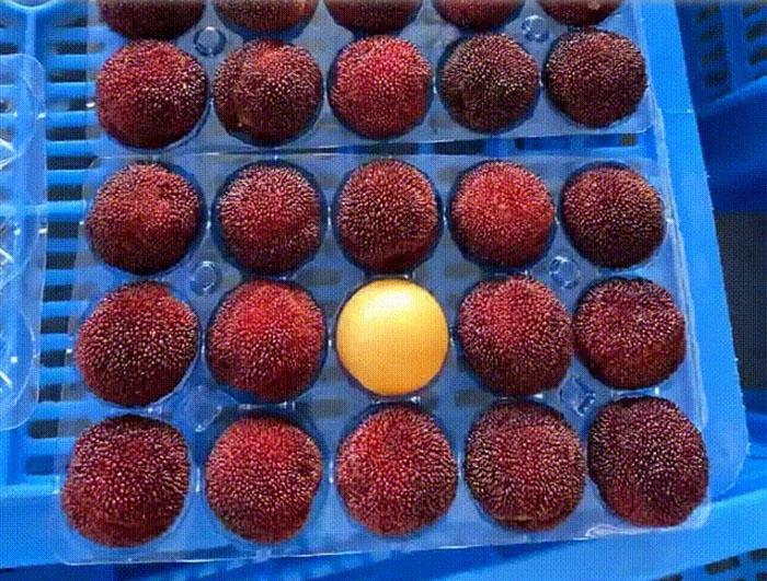 “每个果杯上都有二维码,用于记录每一颗杨梅的数据,根据机器给出的数值,我们进行精细分拣。”该农场负责人蒋卫平表示,智能化分拣除了能提高效率,还能保证杨梅的品质,往年他们每天要雇30多名工人进行分拣,工人们不停忙碌,1个小时也只能分拣五六百斤。“如今有了智能分拣线,仅仅13名工人,1个小时就能分拣八百多斤杨梅。”