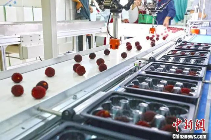 拼技术、拼速度、拼链条,拼出口,一颗颗红彤彤、娇滴滴的杨梅,不再仅是消夏的时令鲜果,更成为了浙江的一张“金”名片。