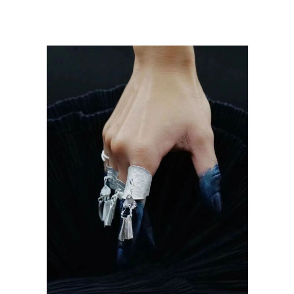 吴迪的设计“取材”与贵州的山川河流、人文风情。在贵州苗寨的日子里,吴迪发现苗族人有自己的“时尚风向”,水龙纹、牡丹花纹都曾是苗族女子们的“心头好”。女子们将家传的银饰交给老银匠,老银匠融掉银饰后制作时兴的款式。