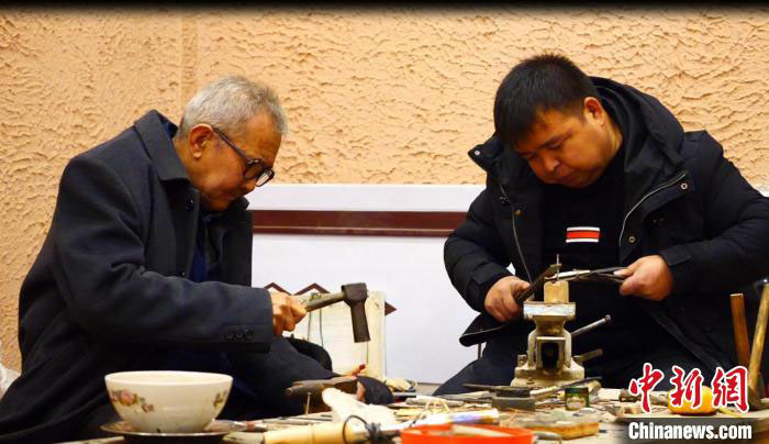 为了把沙雅小刀制作技艺传给更多人,年近古稀的热合曼四处招收徒弟,认真传授小刀制作技艺。