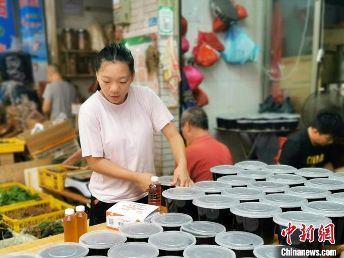 “我们经营生草药,平时有稳定的新鲜土茯苓供货渠道,近年每逢入夏都有煮茯苓膏卖,回头客很多。今年是6月开始煮,每天一早在店里滤渣、分装,然后直接放在桌上摊凉,供顾客选购。买一小桶茯苓膏,可选择配一支水糖或炼奶。”一摊主介绍,煮好的茯苓膏远观是黑色,近看是浅棕色且略带透明状,吃起来如果冻般爽滑,前去购买的多数是回头客。