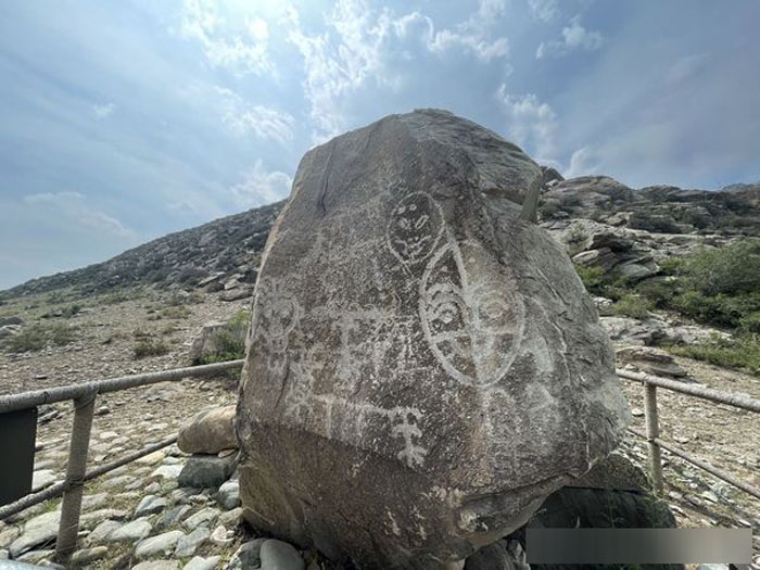 贺兰山,初步统计岩画总量在万幅以上,根据研究发现岩画除大多为动物图案羊、牛、马,以及神秘符号,初步考证都是石器凿刻而成,属于新石器时代产物。其中,各类人面像群类、太阳、星辰等特殊符号,与内蒙、新疆、甘肃一些岩画主题或表现手法类似,研判古时候北方民族的游牧迁徙活动范围很大,极可能在同一个历史时期或场域留下自己创作。