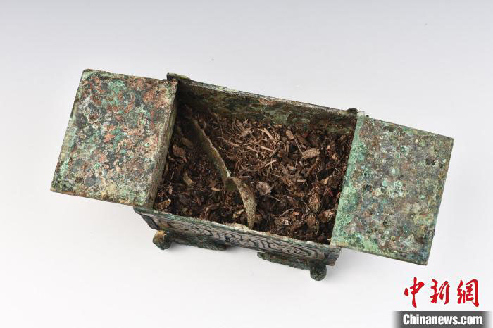 山西省考古研究院联合中国科学院大学考古学与人类学系科研团队对铜盒残留物进行显微形貌和物质组成分析,科研人员在铜盒内发现大量动物脂肪、植物精油和朱砂,以及方解石、文石等物质。由此判定,这是春秋早期的化妆品盒。