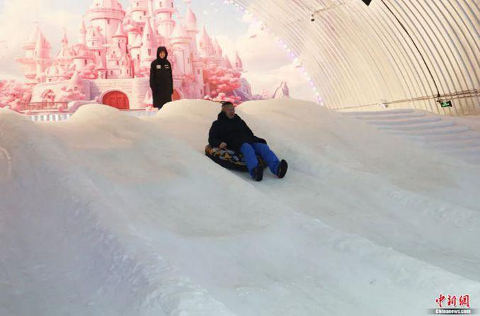 盛夏,在室内乘坐雪地摩托,在雪道上驰骋,感受别样的速度与激情。雪场全长1308米,绕场一周,呐喊声,走起!