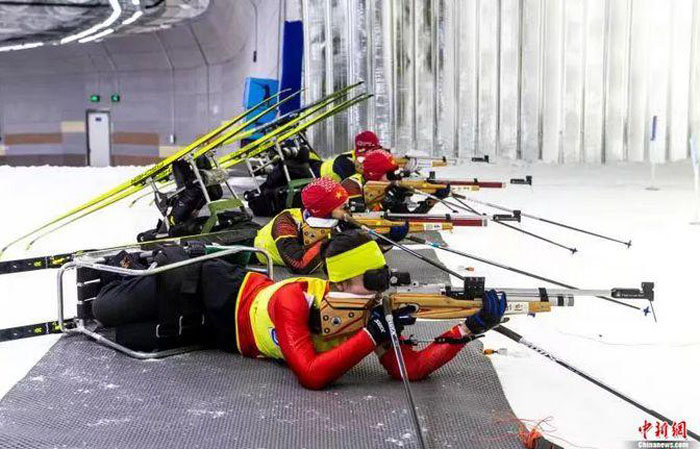 滑完雪圈,我们继续来点“刺激”的。冬季两项比赛的一个重要环节,就在射击场地。如果运动员在射击时偏离靶位,不好意思,那就要到处罚圈滑行一圈。