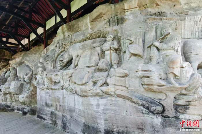 中新社记者:大足石刻至两宋时达到鼎盛。业界有不少专家学者称大足石刻为立体版、石窟版《清明上河图》,原因为何?