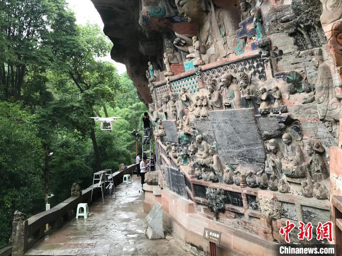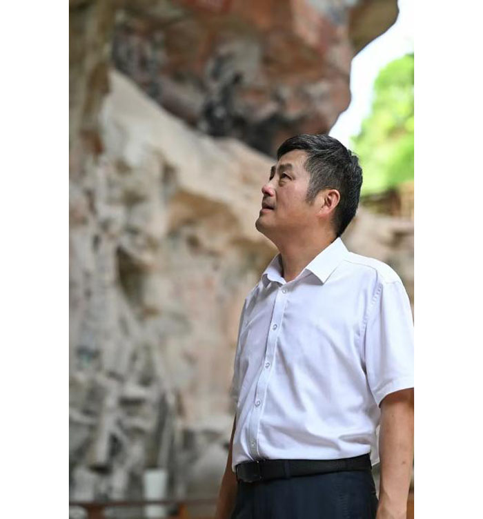 蒋思维:在70多年的探索与发展中,大足石刻保护逐渐形成了“重视前期勘察研究及试验成果支撑,科学研究贯彻保护过程,动态设计和精细化实施”的工作模式,并将考古学、美术学、建筑学、地质学等多个学科融合为一体,形成综合性保护科学,同时在保护工作精细化、精准化探测和少干预实施等方面形成较成熟的技术体系。这一日常维护与预防性保护为主体的保护模式,逐步得以推广。