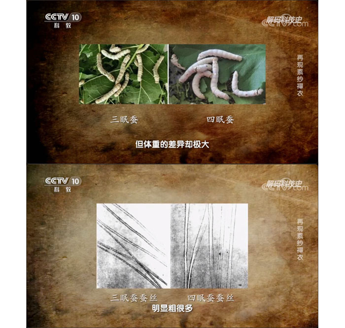 怎么才能还原出“薄如蝉翼、轻若烟雾”的质感?专家团队研究发现,以现代丝绸纺织技艺来看,素纱襌衣的平纹织法并不复杂,难题却出在原材料上──现在的蚕宝宝“吃得太好了”。