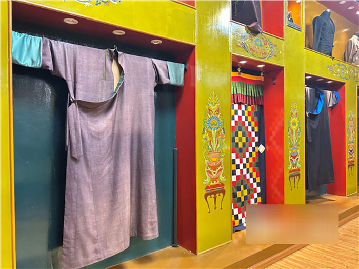 亚德细褐原材料甄选海拔4300米以上的高原绵羊羊毛,通过人工去杂、漂洗、弹选、碾压、穿织成布,再以植物染料浸泡,布匹绵滑、舒软、透气、保暖、不褪色。相传文成公主入藏后曾叹其纺织技术精湛、选材佳优、制作精巧,特命名为“亚德细褐精布”。噶举派兴盛时期,群众用其制作袈裟赠予高僧大德,深受喜爱,特称其为“亚德细褐服饰”。至此,亚德细褐精布与服饰成为享誉全区的高档布料和服饰,为上流社会达官贵人、商贾名流所珍爱。
