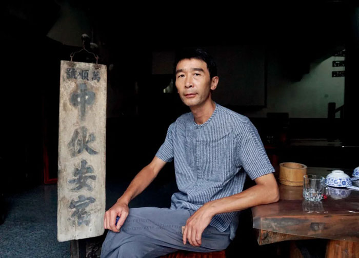他家老屋在张谷英村建筑群的边缘,面朝着环抱村庄的溪水,屋前是一米多宽的畔溪走廊,晚上枕着水声入睡。清嘉庆年间,他的先祖开了间客栈“万顺号”,服务往来的客人。万顺客栈的堂屋里至今挂着一块木牌,一面写着“中伙安宿”,意为中午可以搭伙吃饭,晚上可以住宿,另一面写着“酒饭便宜”。历史完成了呼应。