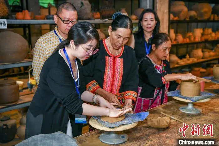 挑土、和泥、制坯……黎族原始制陶技艺传承千年,也是文化与历史的“活化石”,泥与火的碰撞,黎族元素的花纹与图案,让每个黎陶成为独一无二的限量版,用得越久,淬火纹饰的梦幻感和层次感,越强烈。