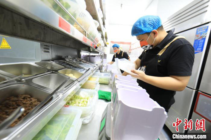 将120克猪肉丝、150克青笋丝和30克木耳丝等原料放入备料盒并点击“鱼香肉丝”选项,智能炒菜机立刻被“唤醒”,预热、放油、按序加料、快速翻炒,厨房内香气四溢。在成都市锦江区一家社区餐饮店内,一份色香味俱全的鱼香肉丝仅63秒便制作完成,很快被端上食客餐桌。