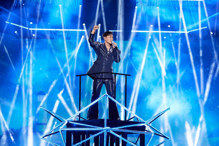 在同期歌手的演唱会里,张信哲的舞台年轻得像个“异类”。唱《白月光》,半空中升起圆形装置,他就像站在一弯明月上唱歌;到《就懂了》,他在移动的星星舞台上边唱边打拍子,唱着唱着就直接抵达了观众内场,突然,全场响起海浪般的欢呼,原来在他身后,无人机在夜空中排成了一个巨大的“卡通张信哲”。