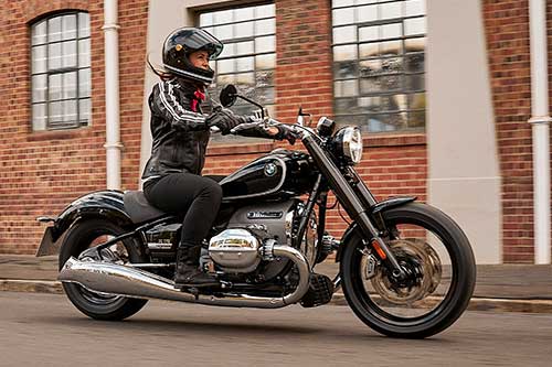 该豪华巡航摩哆车配备了明亮的全LED头灯以及包含车尾变向指示灯的LED尾灯。由磨坊加工铝制成的高品质“Machined”引擎盖在Roland Sands设计的加持下呈现出非常吸引人的黑与银高反差色彩。全新BMW R 18也搭载了双饰条和镀铬设计元素。